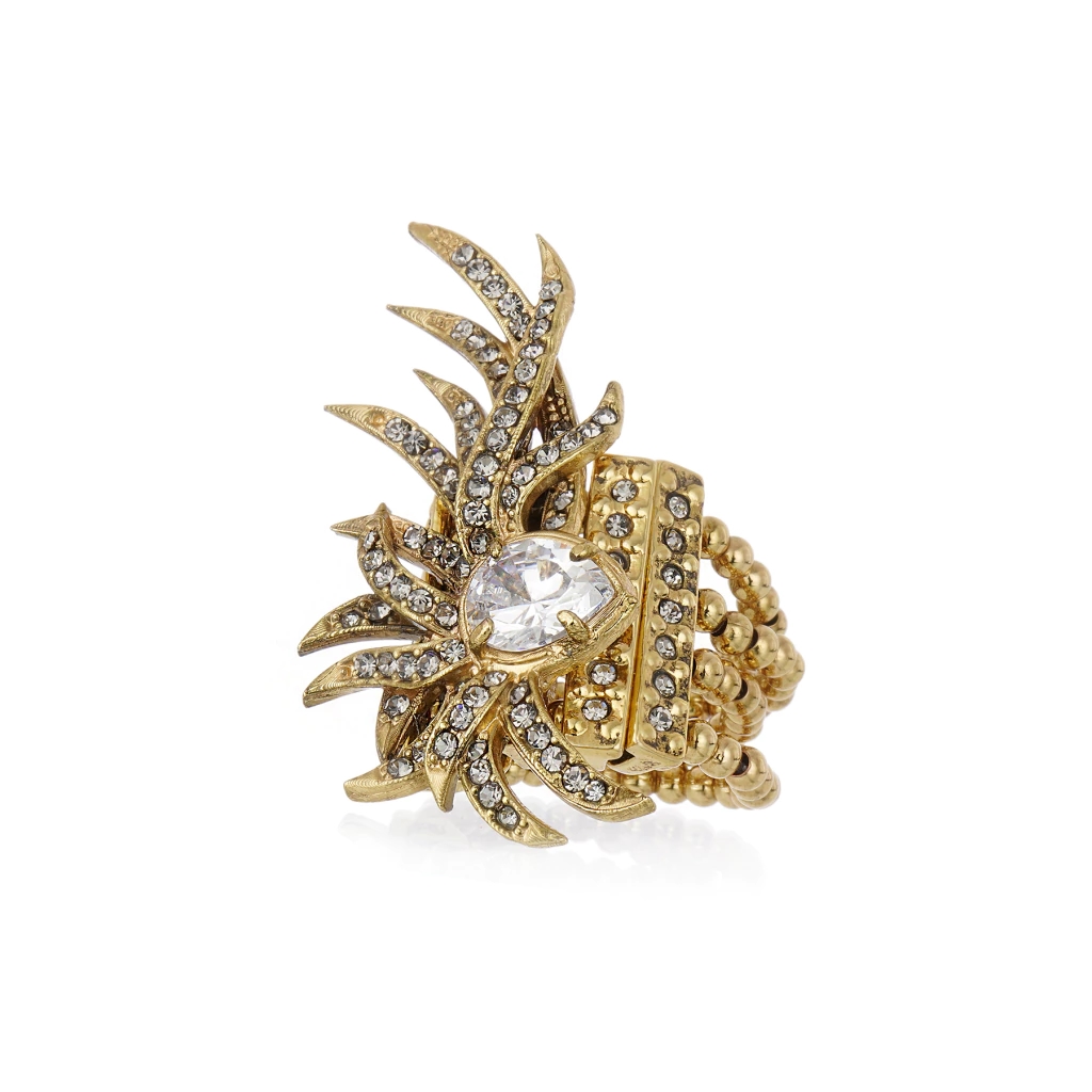 Anel ajustável com fios de silicone banho de ouro vintage com aplicação de cristais e zircônias nas cores branco (cristal) e black diamond.