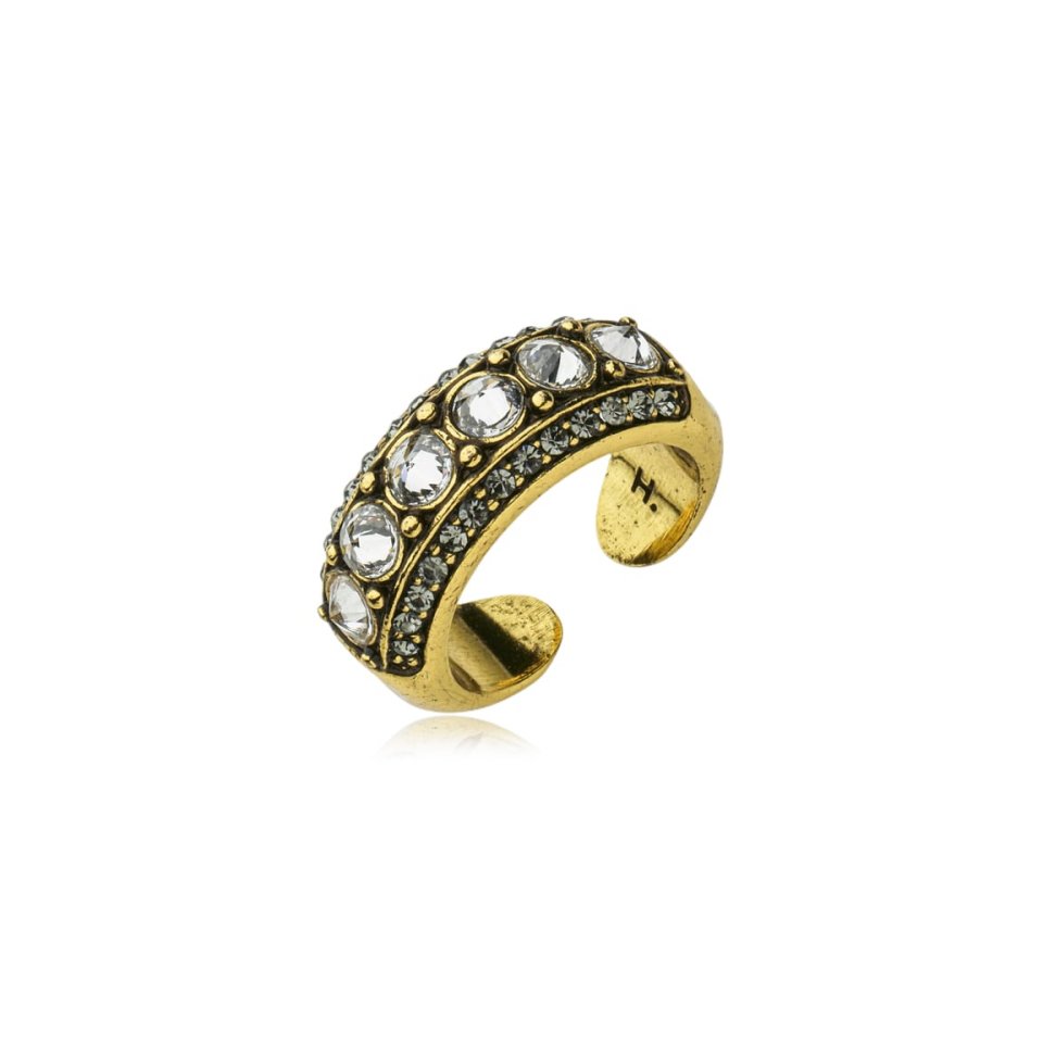 Anel com abertura banho de ouro vintage com aplicação de zircônias na cor branco (cristal).