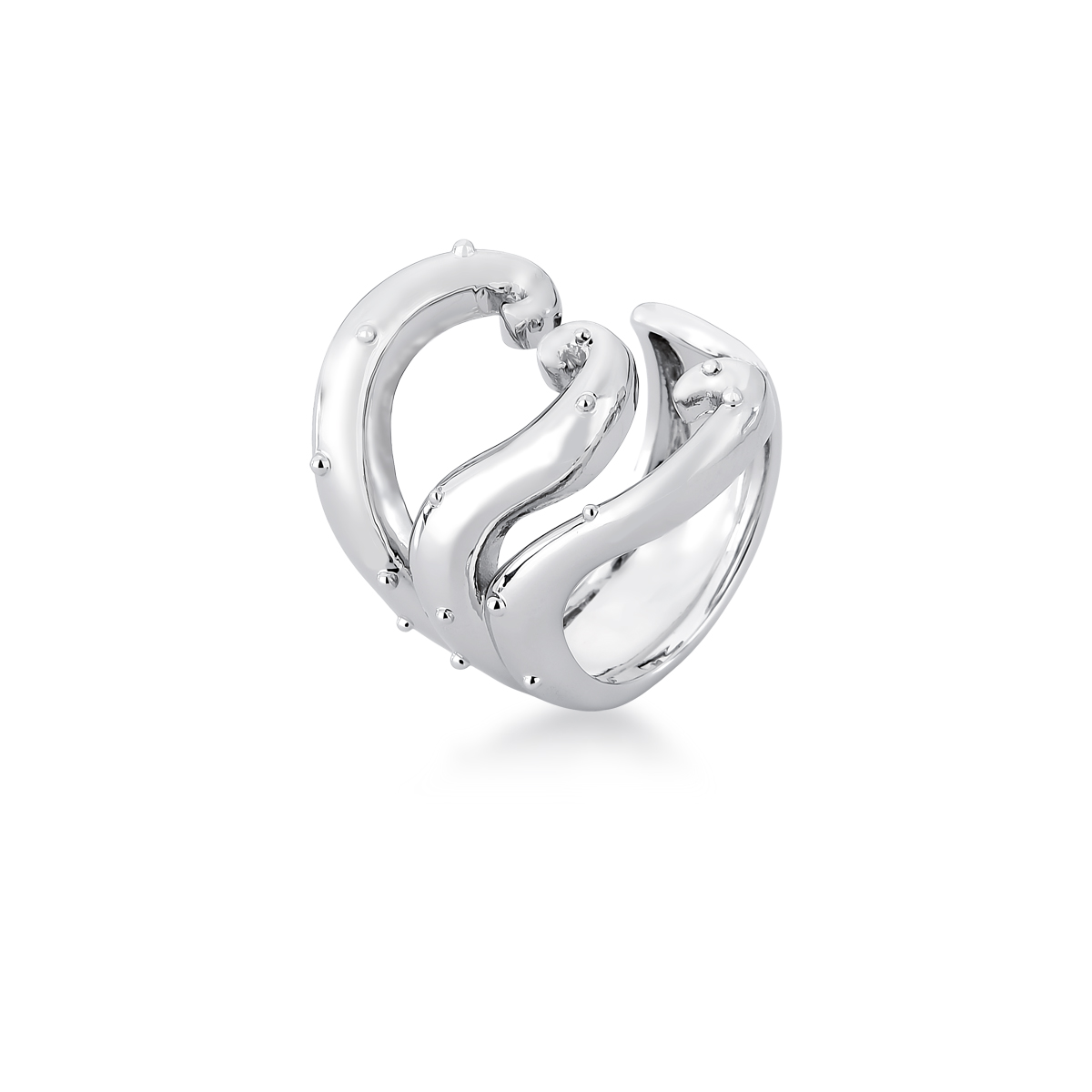 Anel curvado banhado a ródio, vazado, com abertura e mini esferas, uma peça que se destaca pelo brilho e pelo design moderno. Delicado e ao mesmo tempo marcante, adiciona um toque de charme e personalidade ao look, elevando desde produções básicas até composições mais sofisticadas.