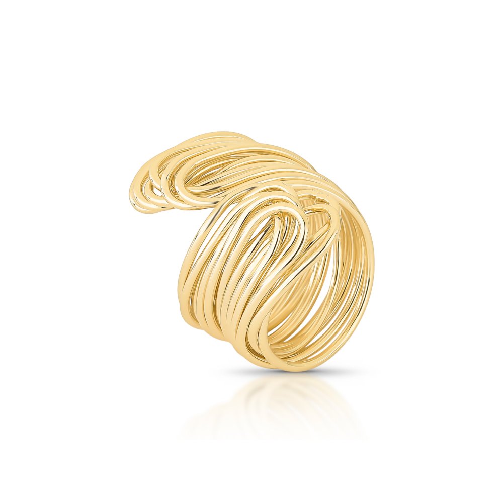 Com banho de ouro e acabamento polido de alta qualidade, a peça reflete a luz de forma delicada, valorizando cada curva do metal liso. Seu design confortável garante um encaixe elegante, tornando o anel um ponto de destaque em qualquer composição.