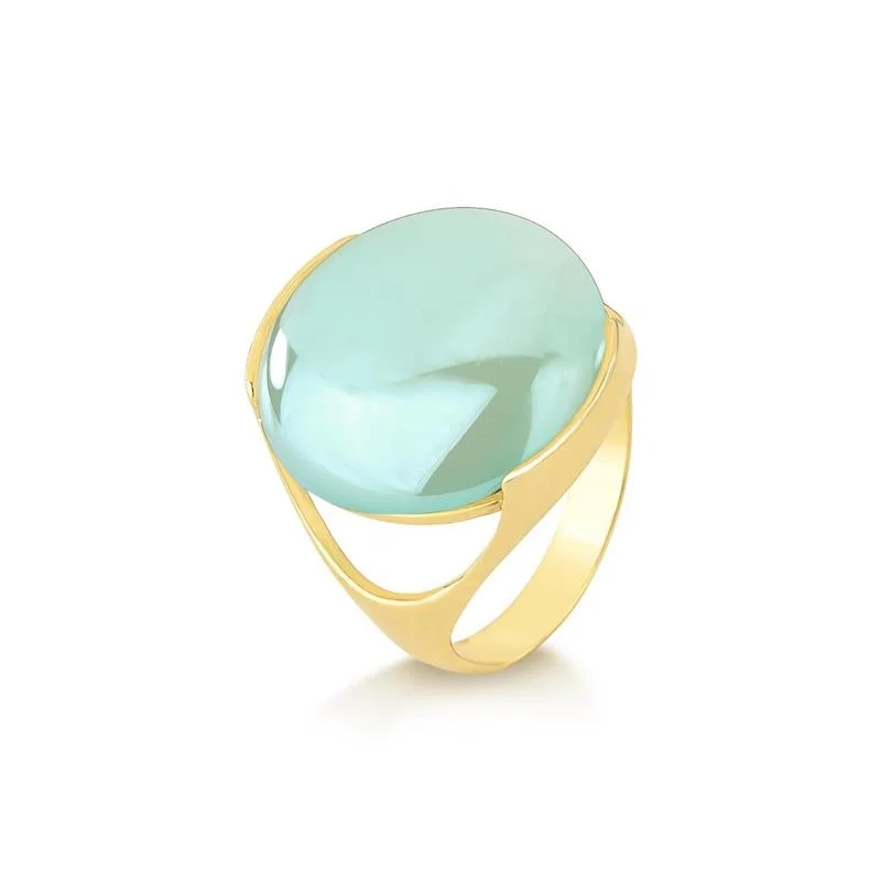 Anel banho de ouro com design redondo e aplicação de pedra natural ágata céu perolado.