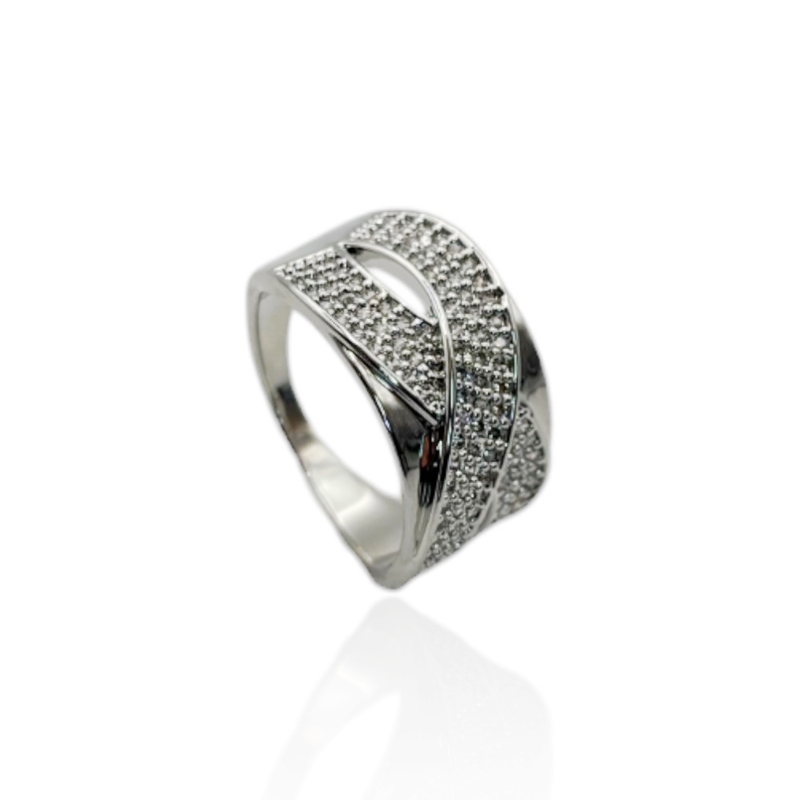 Anel banho de ródio com detalhe trançado e micro zircônias cravejadas na cor branco (cristal).