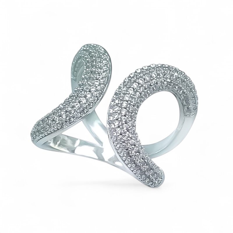 Anel banho de ródio entreaberto com cravação de micro zircônias na cor branco (cristal).
