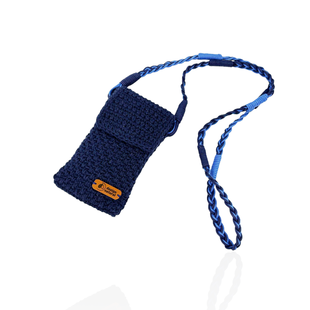 Bolsa produzido artesanalmente em fios 100% de algodão na cor azul marinho.