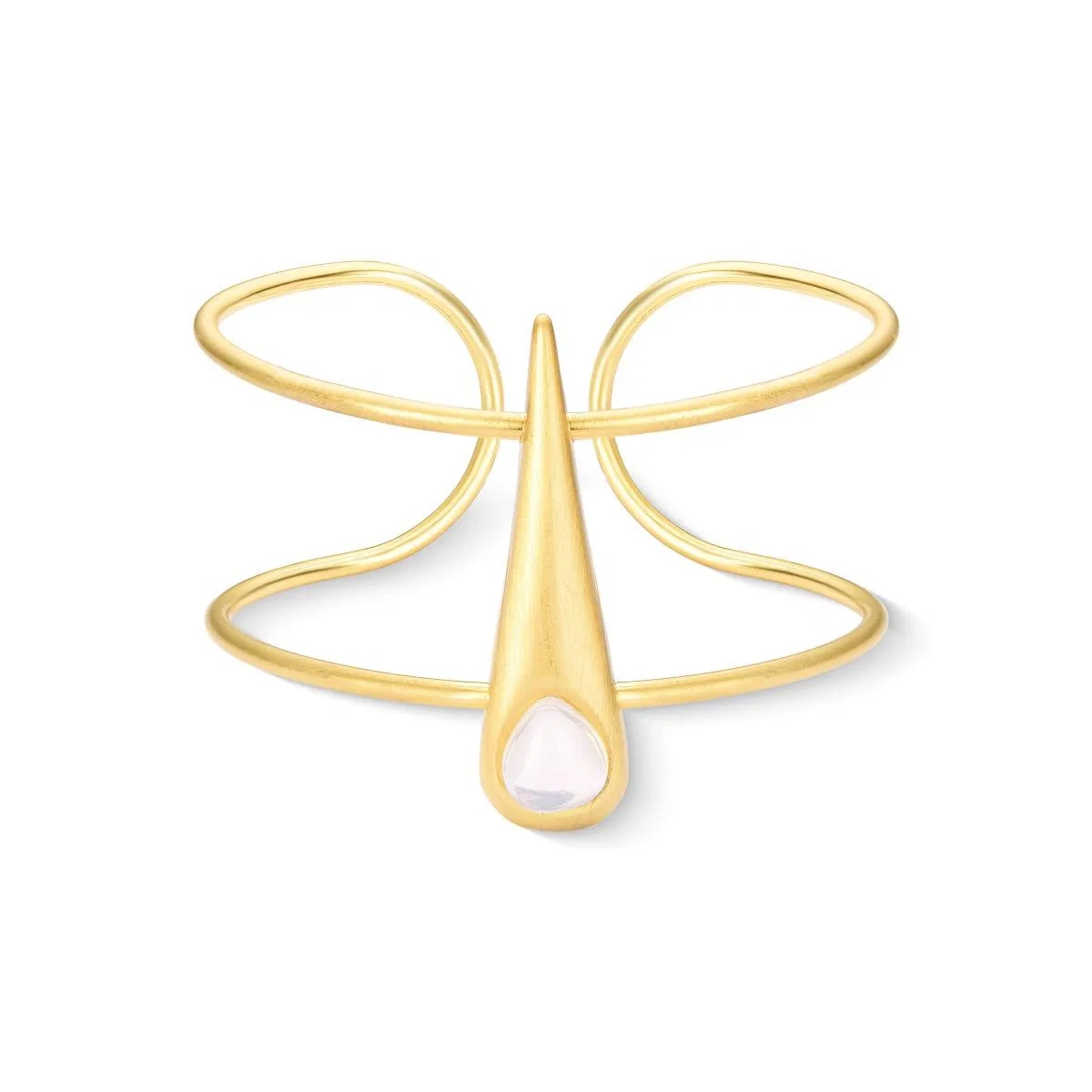 Bracelete com design em gota alongada, confeccionado com pedra natural opalina e acabamento em banho de ouro acetinado. A peça apresenta linhas orgânicas e esculturais que envolvem o pulso com leveza, criando um visual contemporâneo e sofisticado. A opalina se destaca pelo efeito leitoso e luminoso, trazendo suavidade e elegância ao look. A semijoia une brilho equilibrado, acabamento refinado e versatilidade, sendo ideal para valorizar produções do dia a dia e também complementar composições mais elegantes para ocasiões especiais. Uma joia atemporal que transmite delicadeza, charme e personalidade.