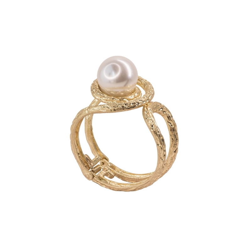 Bracelete articulado banho de ouro com aplicação de pérola.
