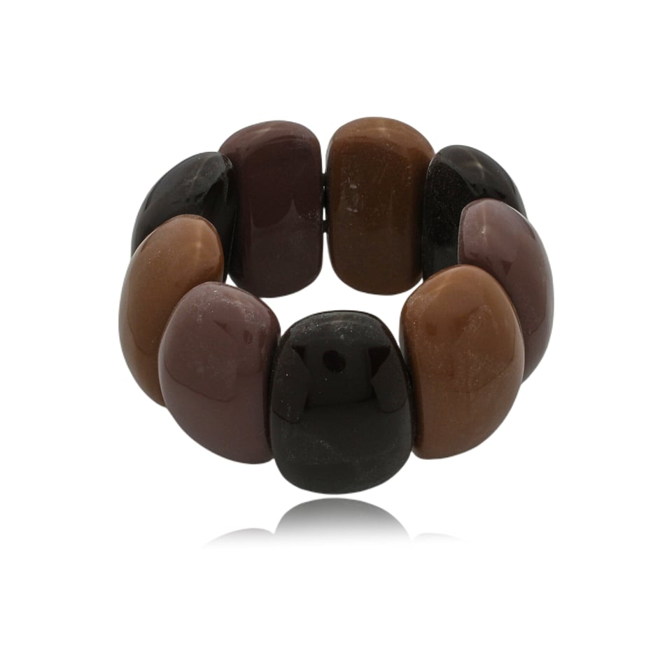 Bracelete de fios elásticos com resinas em tons terrosos.