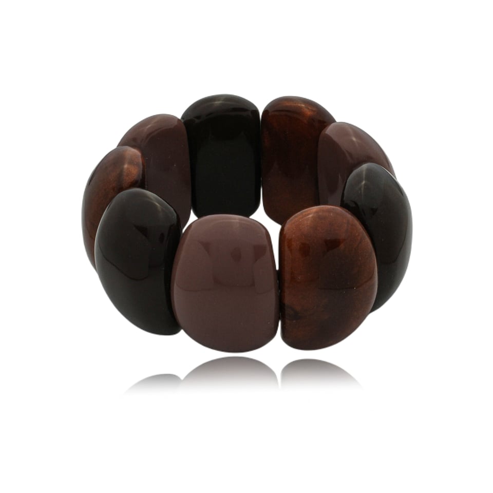 Bracelete de fios elásticos com resinas em tons terrosos.