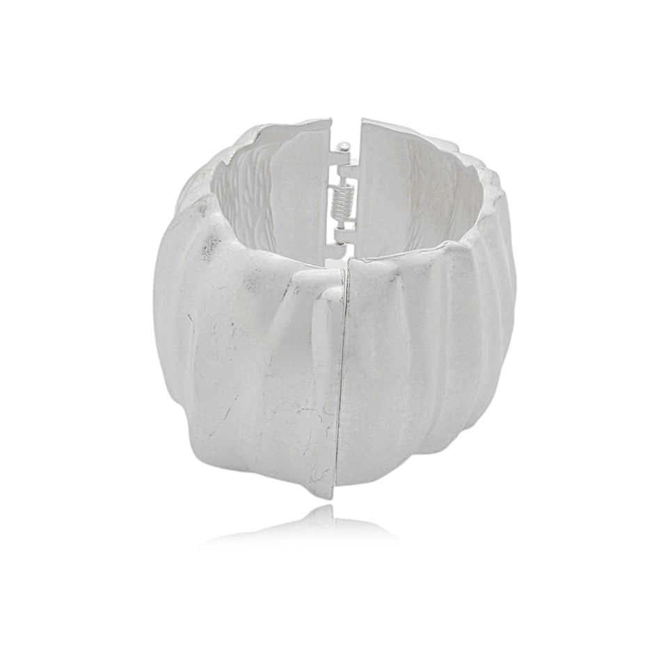 Bracelete articulado banho de ródio acetinado com design ondulado.
