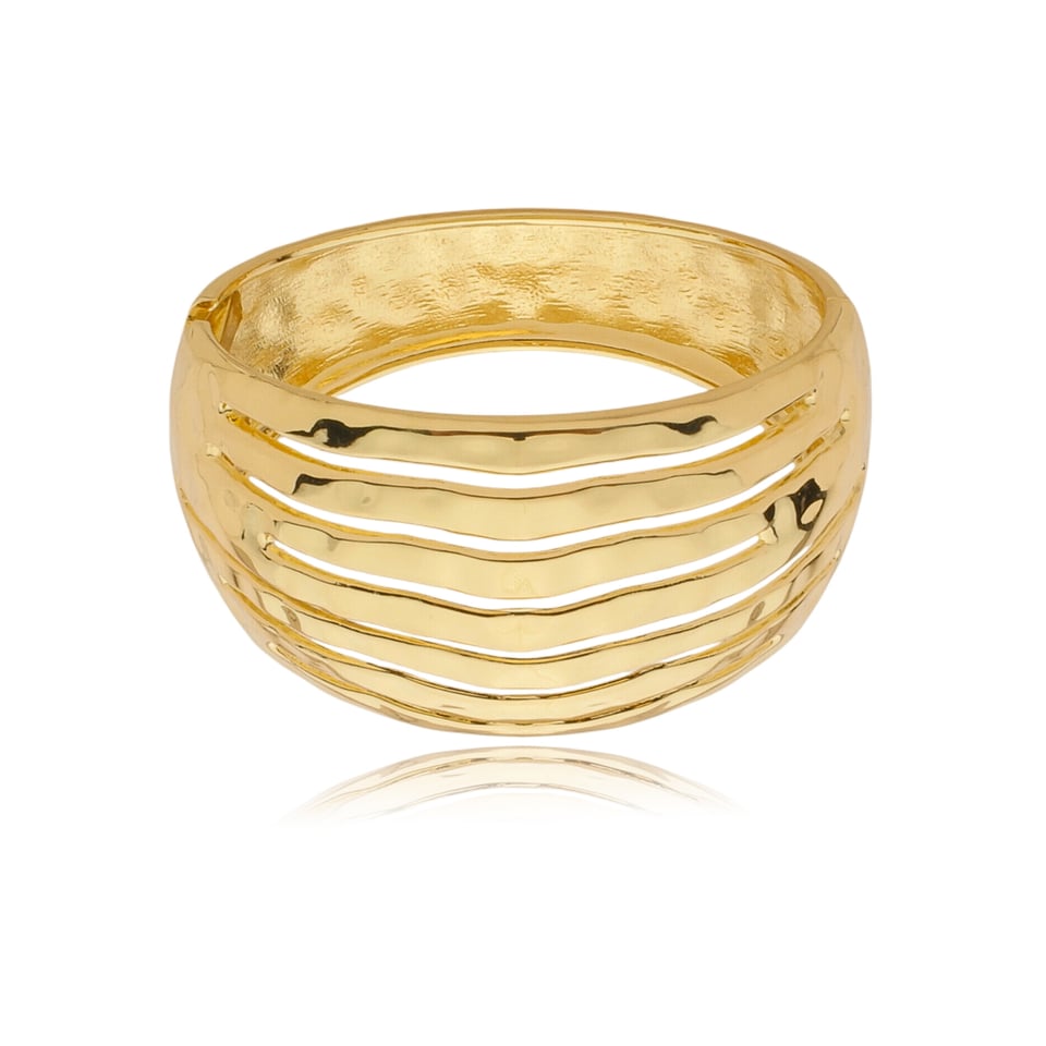 Bracelete articulado banho de ouro com design ondulado no metal vazado.
