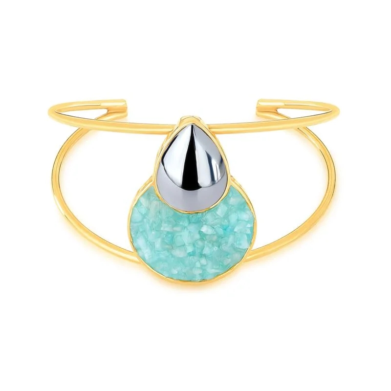 Bracelete pedra natural hematita e amazonita verde ouro semijoia