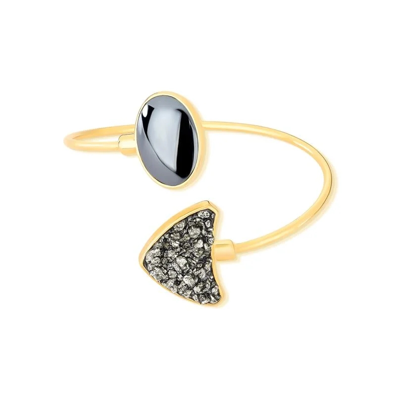Bracelete banho de ouro com pedras naturais hematita e pirita.