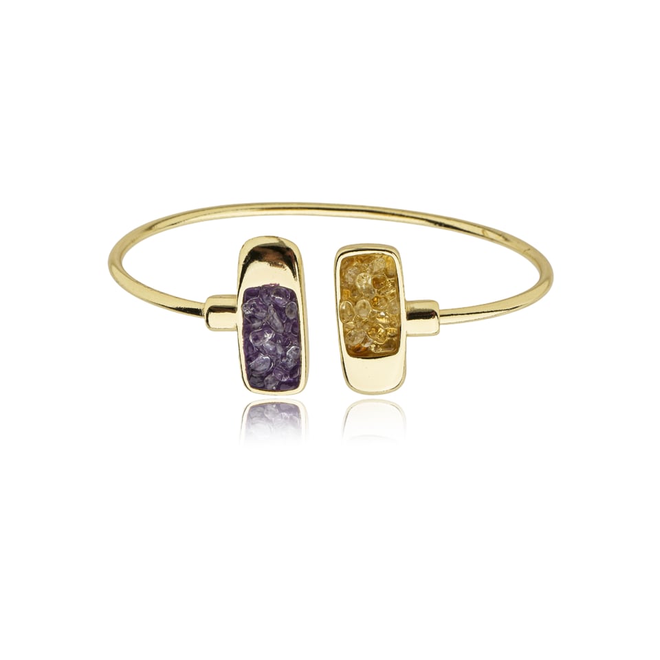 Bracelete banho de ouro com pedras naturais ametista e citrino.