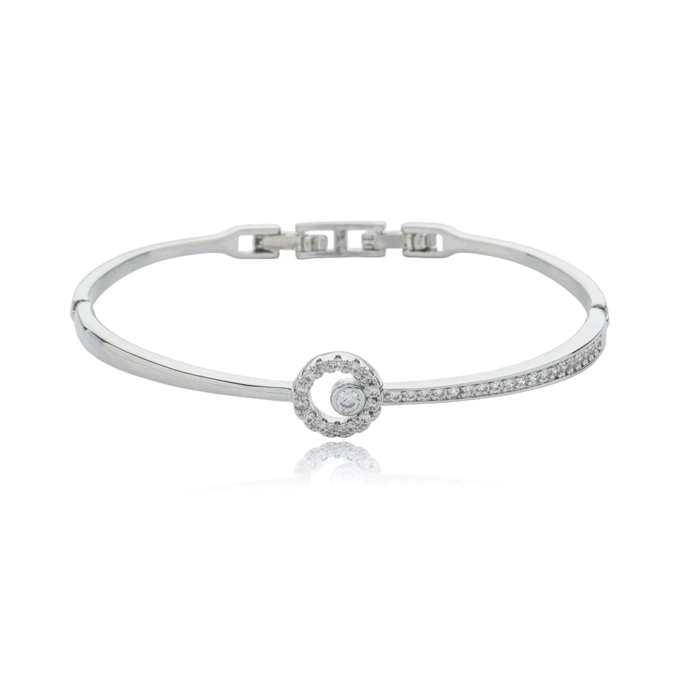 Bracelete articulado banho de ródio com cravação de micro zircônias na cor branco (cristal).