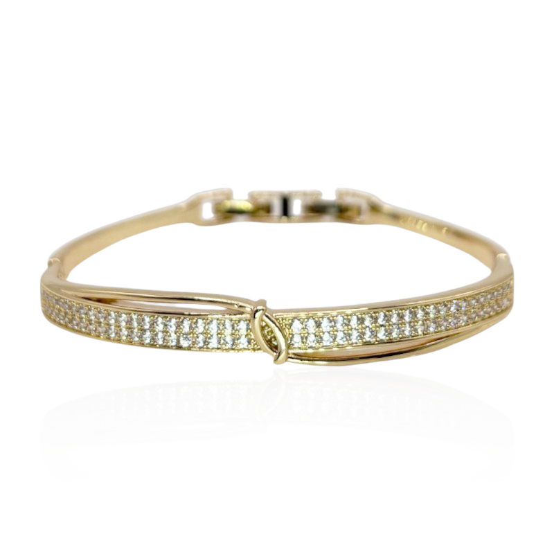 Bracelete articulado banho de ouro com micro zircônias cravejadas na cor branco (cristal).