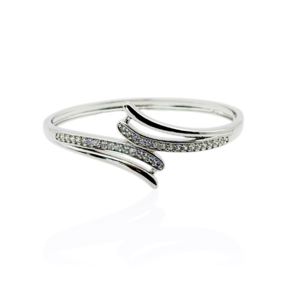 Bracelete articulado banho de ródio com micro zircônias cravejadas na cor branco (cristal).