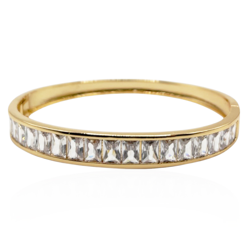 Bracelete banho de ouro com cravação de zircônias na cor branco (cristal).