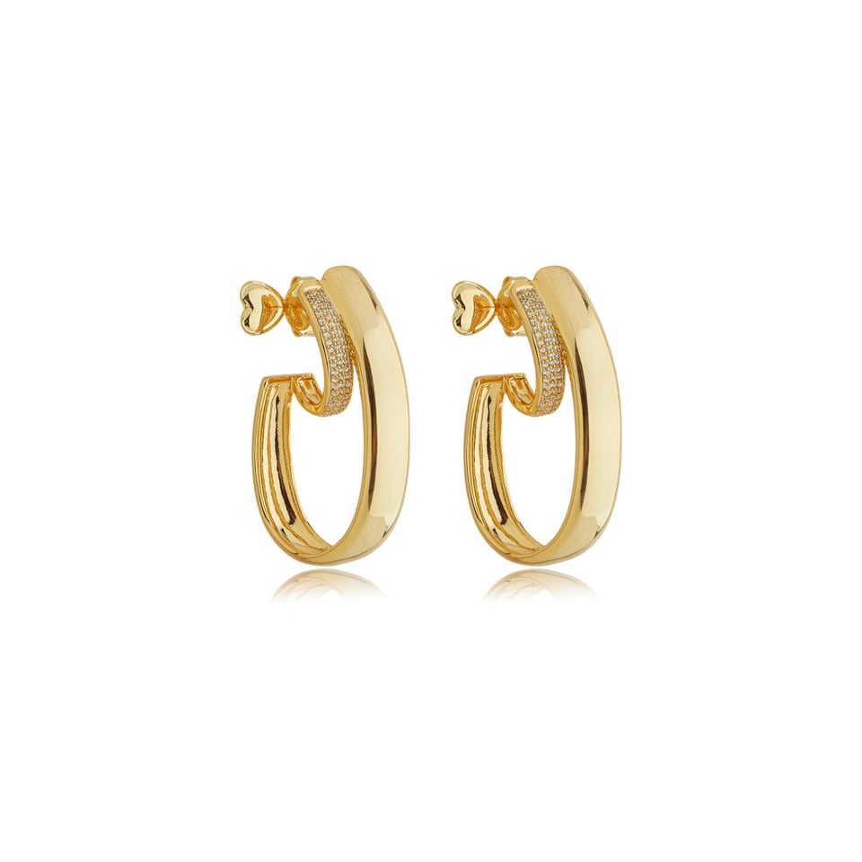 Brinco argola aberta banho de ouro com uma volta lisa e outra com micro zircônias cravejadas na cor branco (cristal).