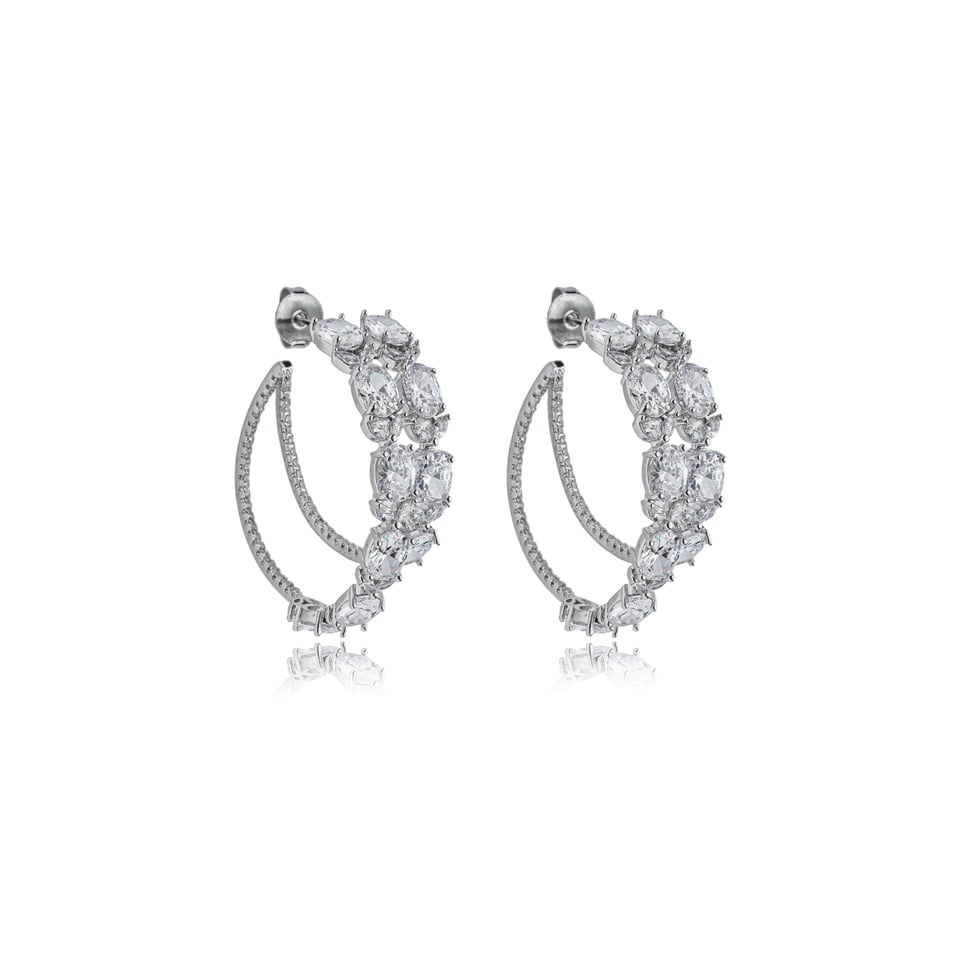 Brinco argola aberta banho de ródio com zircônias cravejadas na cor branco (cristal).