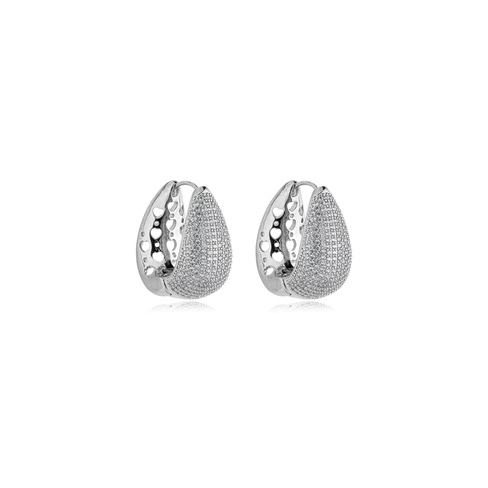 Brinco argola gota banho de ródio com micro zircônias cravejadas na cor branco (cristal).