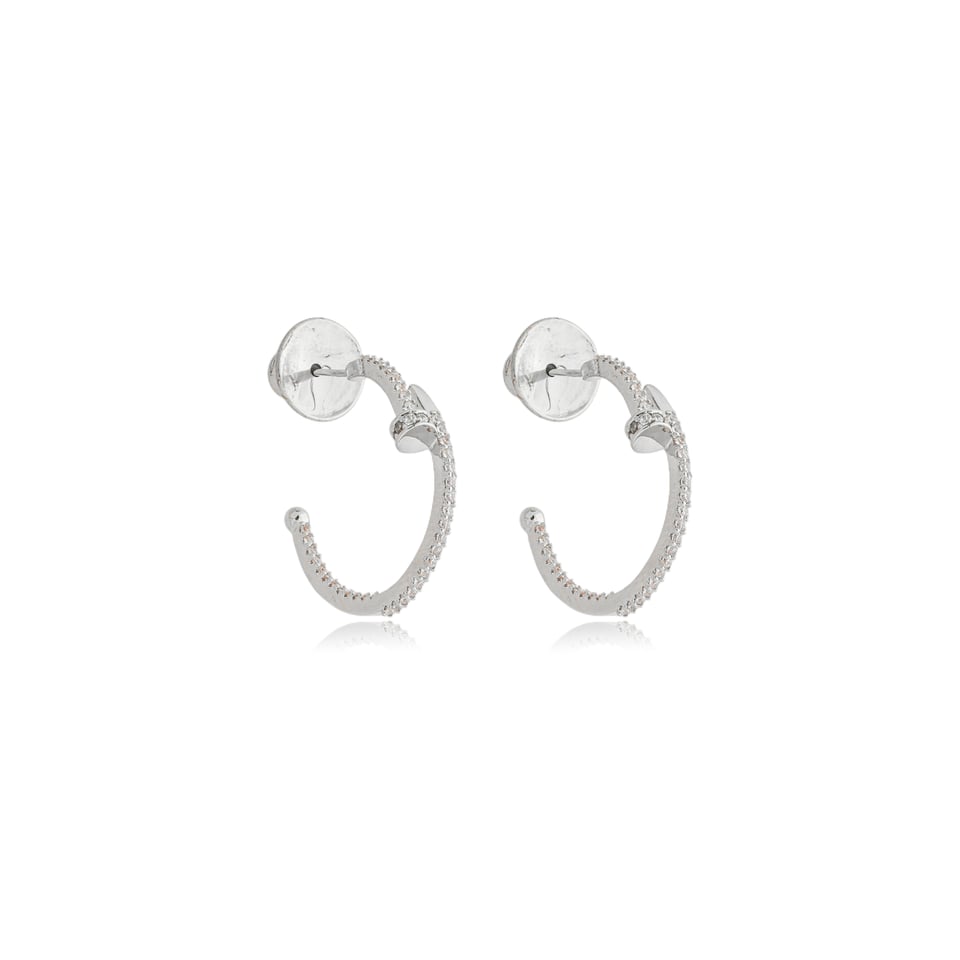 Brinco argola aberta banho de ródio com cravação de micro zircônias na cor branco (cristal).