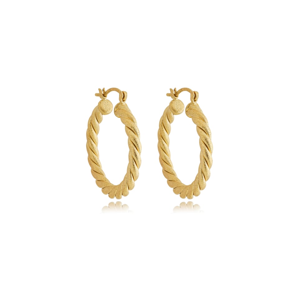 Brinco argola banho de ouro no metal torcido fosco.