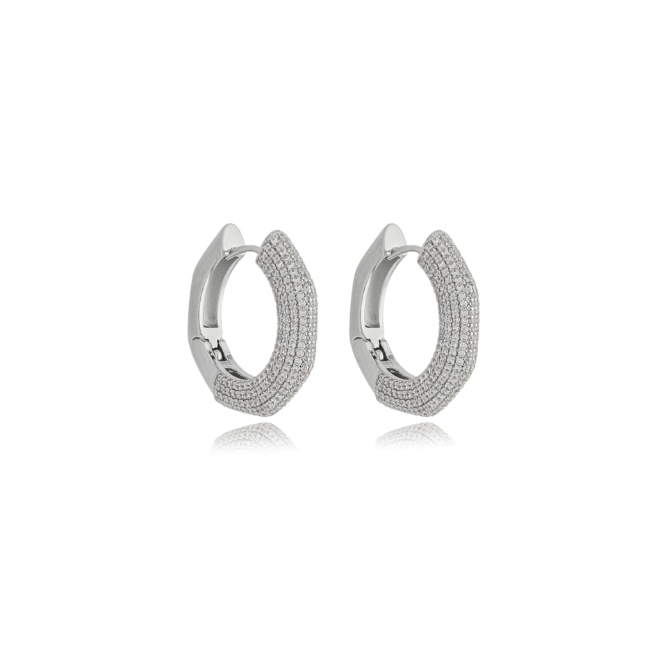 Brinco argolinha banho de ródio com 7 lados e cravação de micro zircônias na cor branco (cristal).