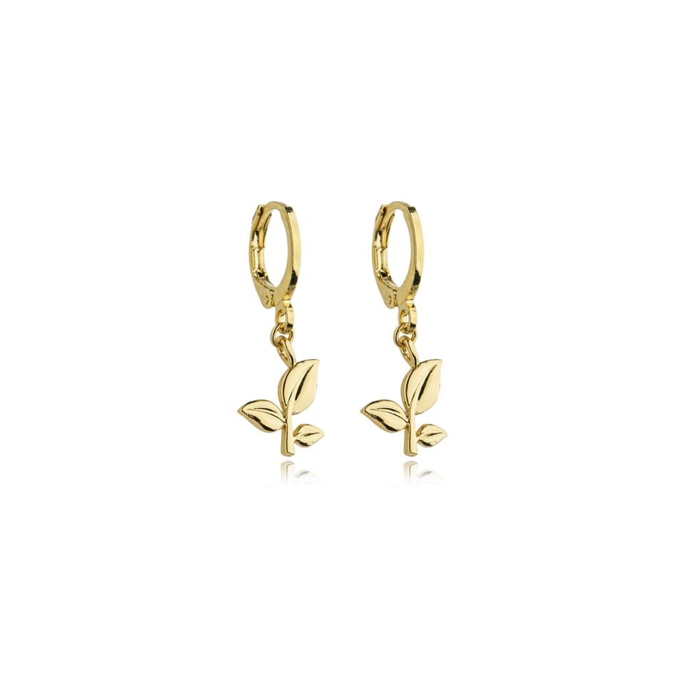 Brinco argolinha banho de ouro com penduricalho de broto.