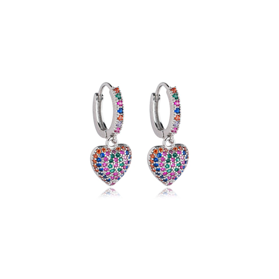 Brinco argolinha banho de ródio com micro zircônias coloridas cravejadas.