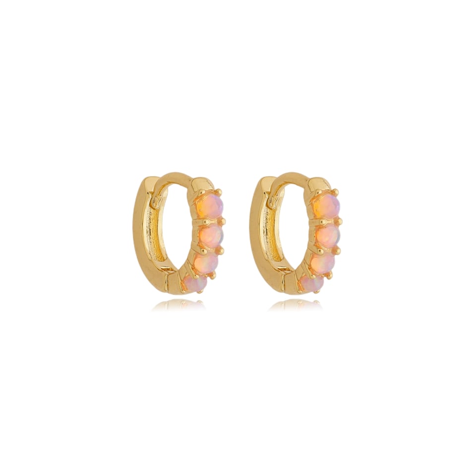 Brinco argolinha cristal opala rosa ouro semijoia 25k01057