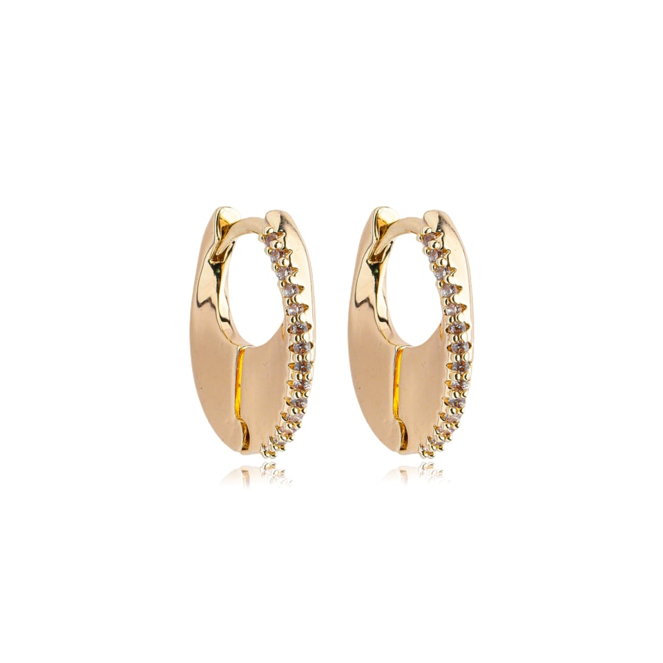 Brinco argolinha fina zircônia ouro semijoia 24k12068