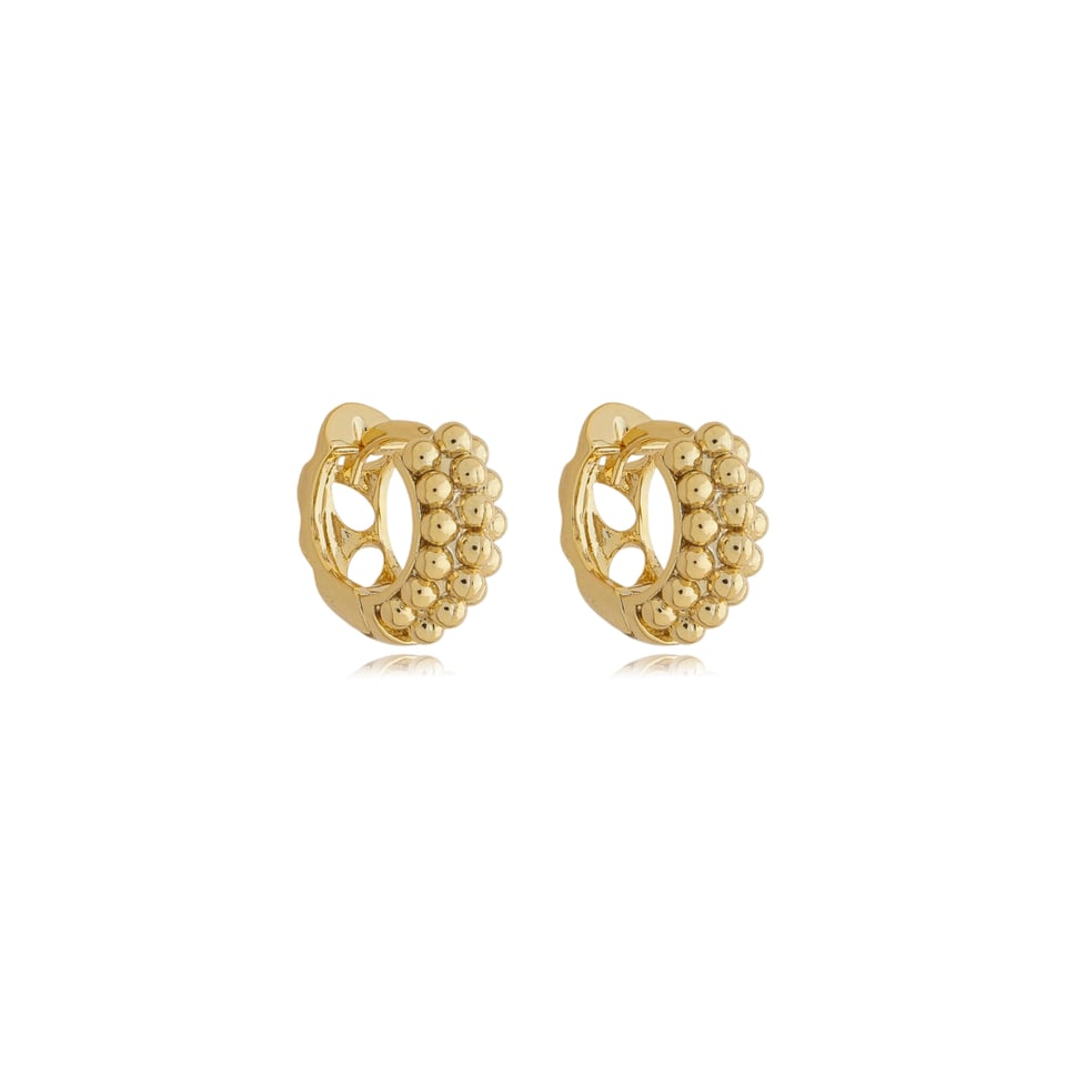 Brinco argolinha banho de ouro com detalhes de mini esferas.