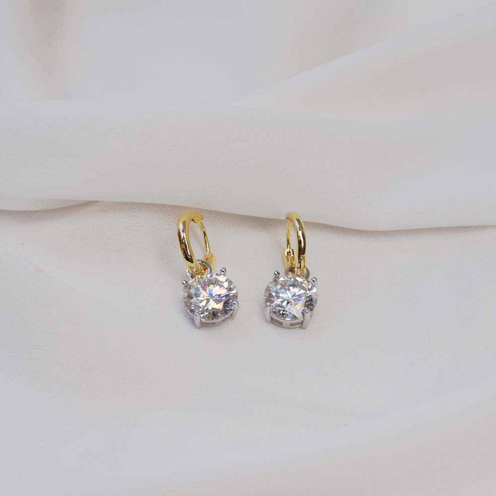 Medidas: argolinha 1,3 cm de diâmetro por 2 mm de largura; moissanite: 10 mm de diâmetro.