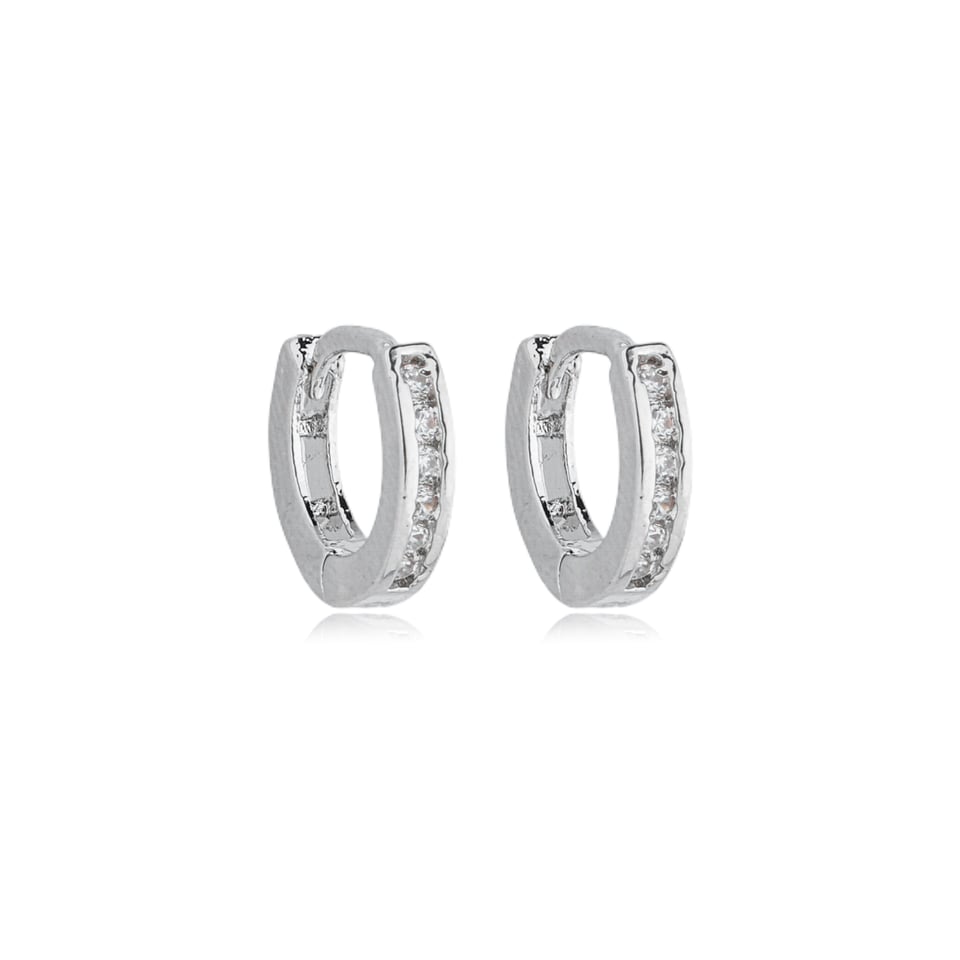 Brinco argolinha segundo furo banho de ródio com zircônias na cor branco (cristal).