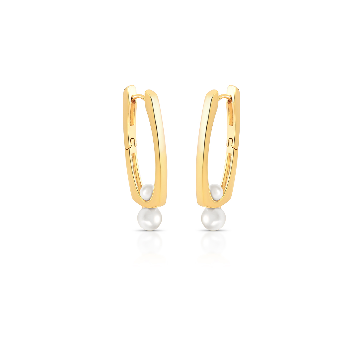 Brinco argolinha retangular banhado a ouro adornada com pérolas shell, perfeita para composições sofisticadas e elegantes. O design moderno realça o visual com delicadeza, enquanto o fecho click garante praticidade e segurança no uso diário.