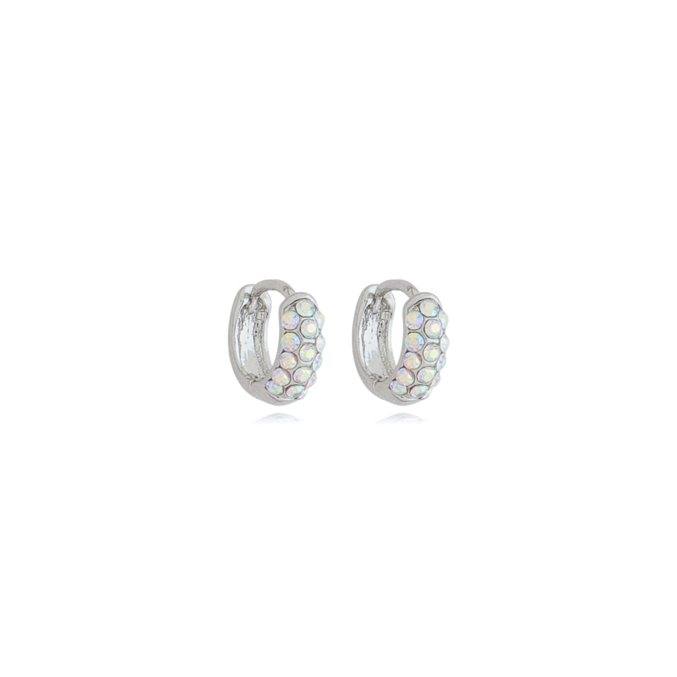 Brinco argolinha segundo furo banho ródio com strass na cor boreal (furtacor)