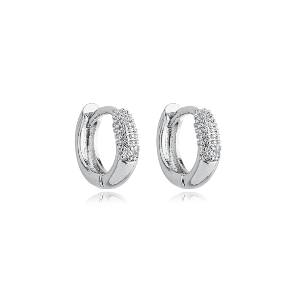 Brinco argolinha segundo furo texturizado ródio semijoia 24a01031