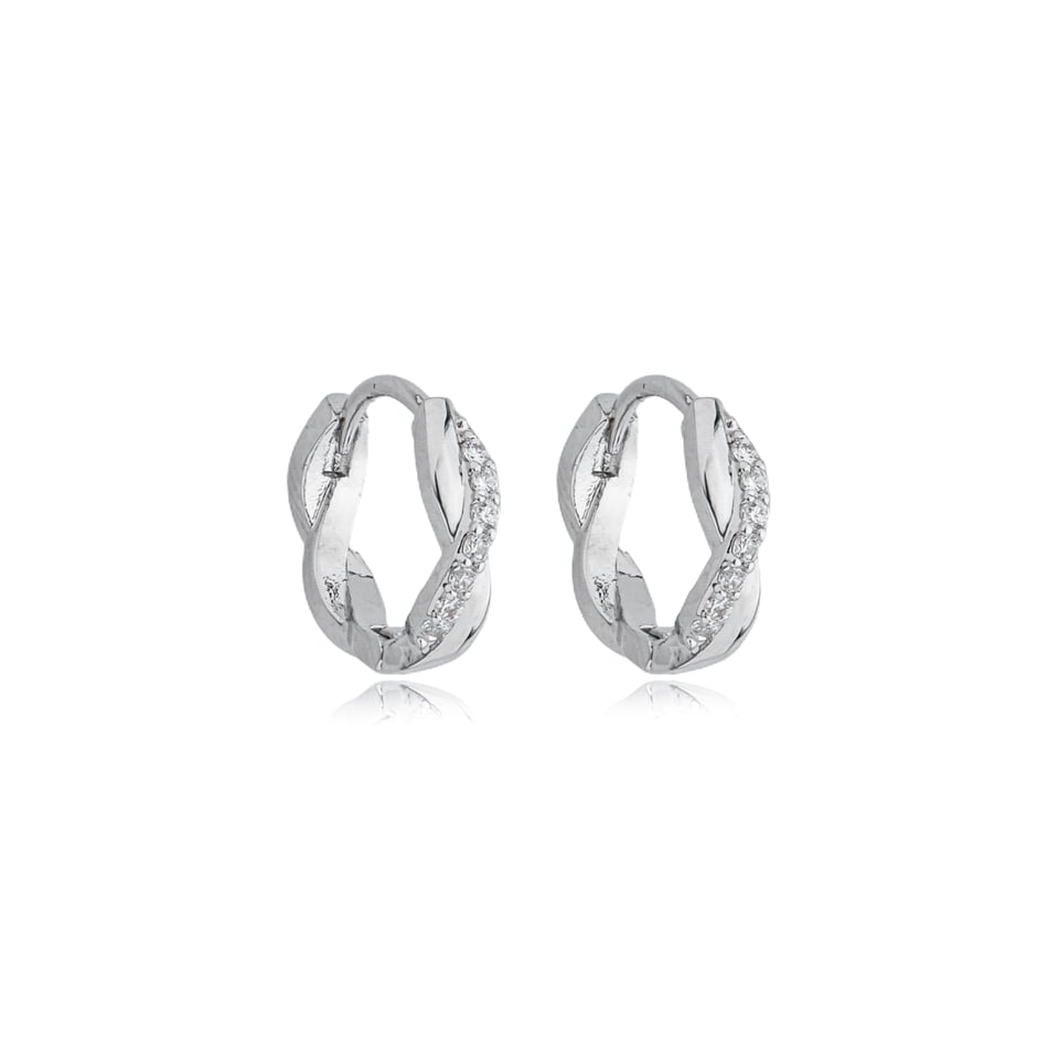 Brinco argolinha banho de ródio com micro zircônias cravejadas na cor branco (cristal).