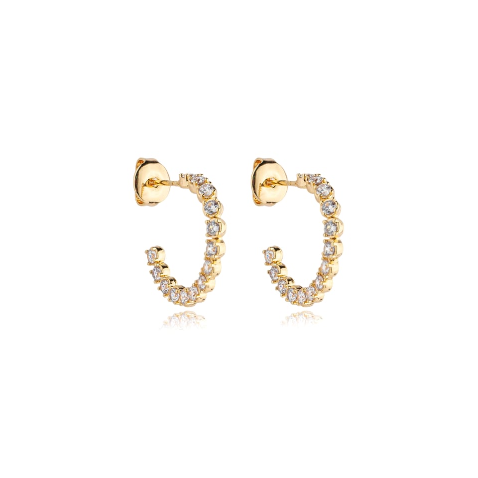 Brinco argolinha aberta banho de ouro com cravação de zircônias na cor branco (cristal).