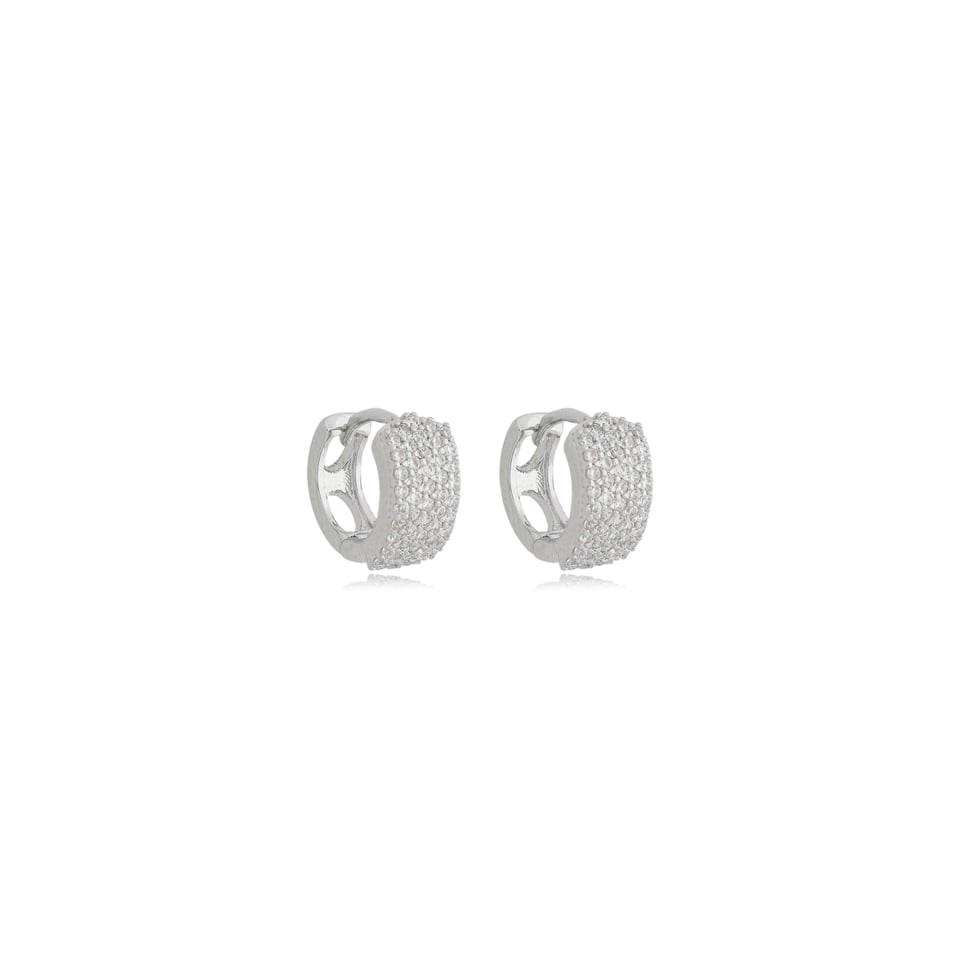 Brinco argolinha banho de ródio com micro zircônias cravejadas na cor branco (cristal).