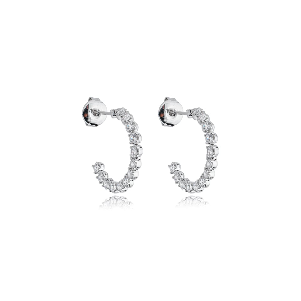 Brinco argolinha aberta banho de ródio com cravação de zircônias na cor branco (cristal).