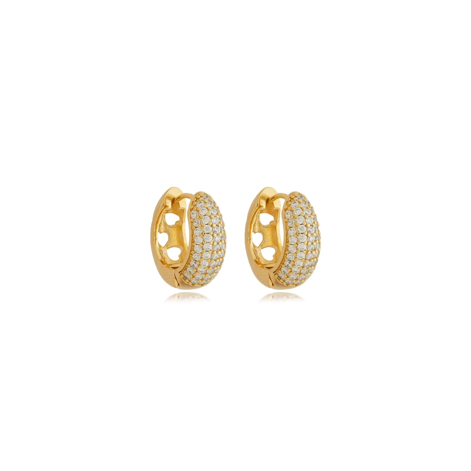 Brinco argolinha banho de ouro com micro zircônias cravejadas na cor branco (cristal).