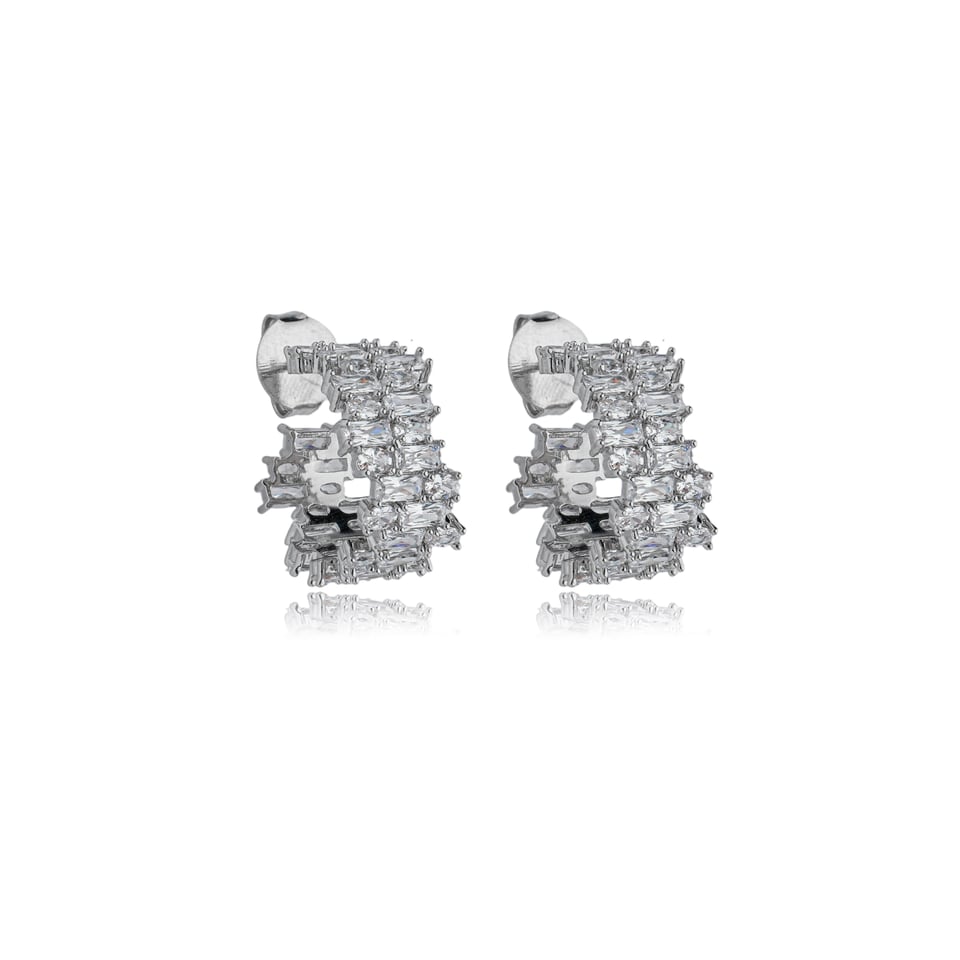Brinco argolinha aberta banho de ródio com cravação de zircônias na cor branco (cristal).