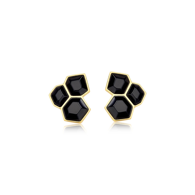 Brinco Ayla pedra natural obsidiana negra ouro semijoia