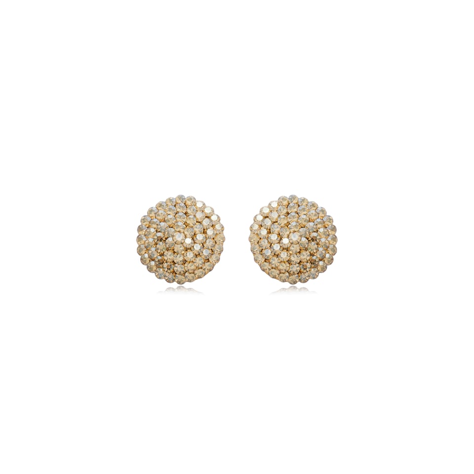 Brinco banho dourado com aplicação de cristais na branco (cristal).