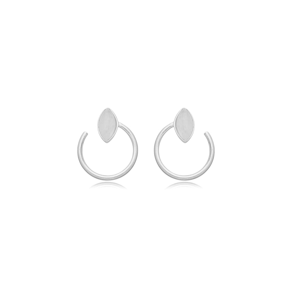 Brinco de prata 925 com aplicação de pedra natural quartzo rosa.