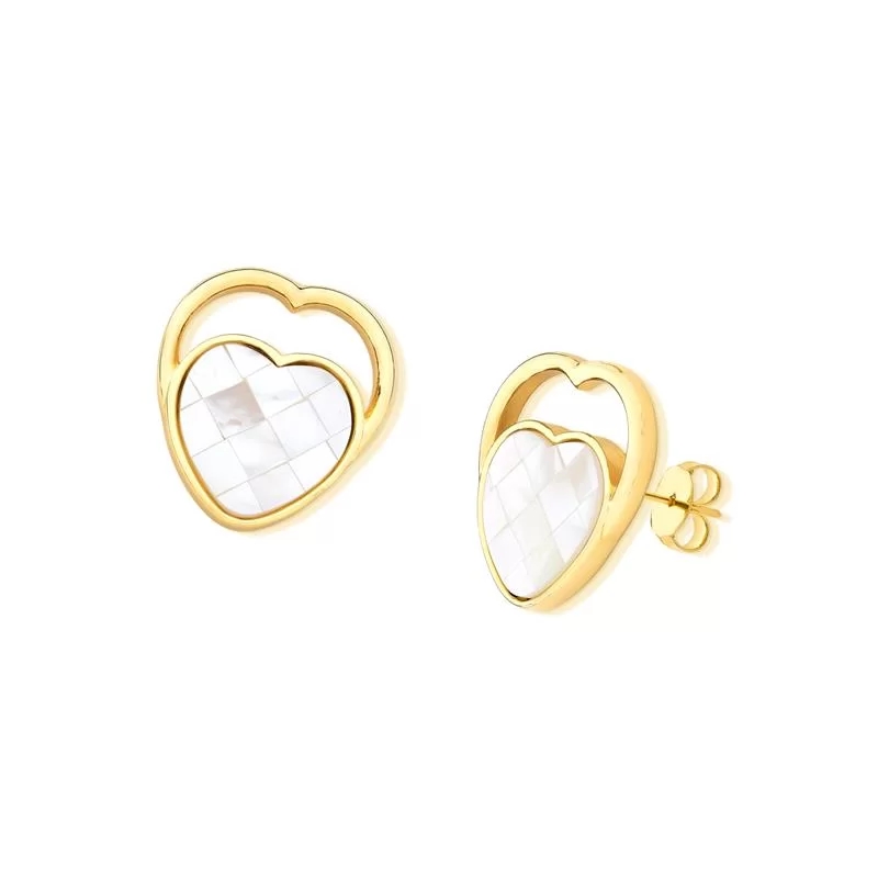 Brinco banho de ouro com pedra natural madrepérola em mosaico.