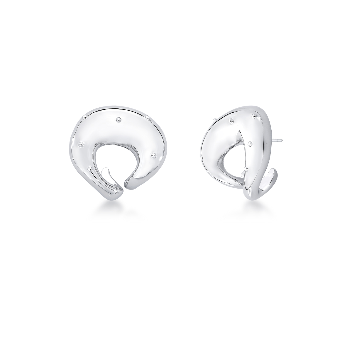 Brinco curvado com abertura e mini esferas, banhado a ródio, oferecendo brilho intenso e um toque moderno ao visual. Uma peça que se destaca pela delicadeza e charme, perfeita para complementar produções com elegância e personalidade.