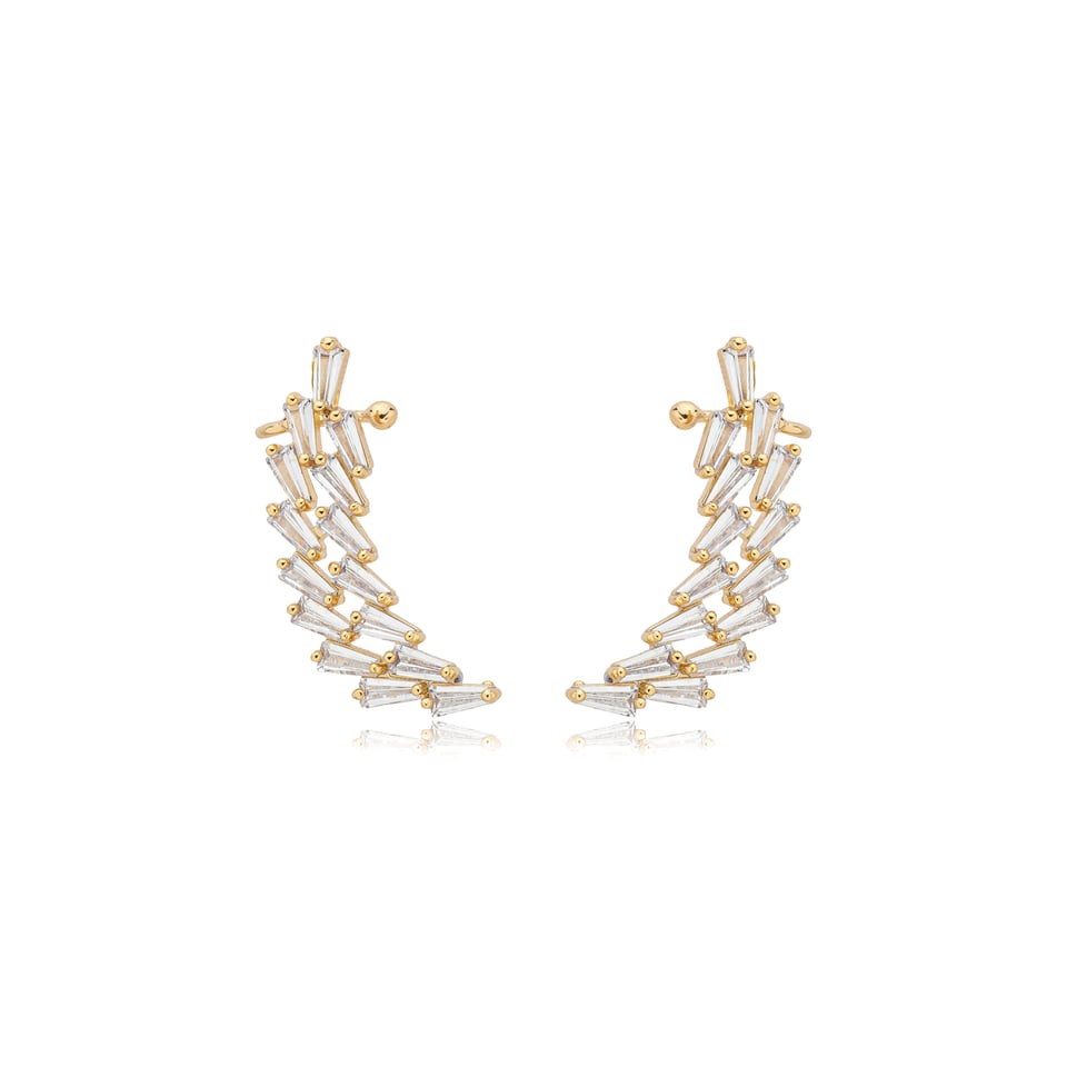 Brinco ear cuff banho de ouro com cravação de zircônias baguetes na cor branco (cristal)