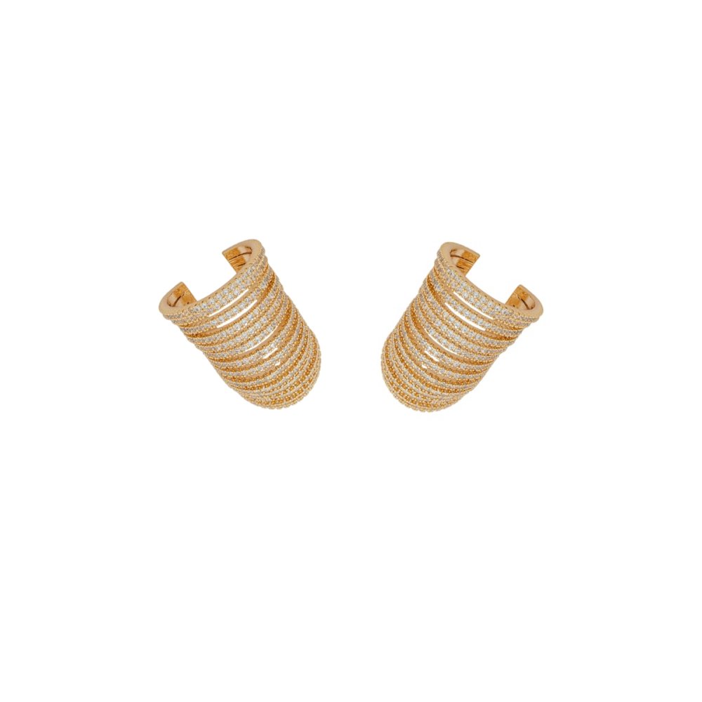 Brinco ear cuff de encaixe banho de ouro com micro zircônias cravejadas na cor branco (cristal).